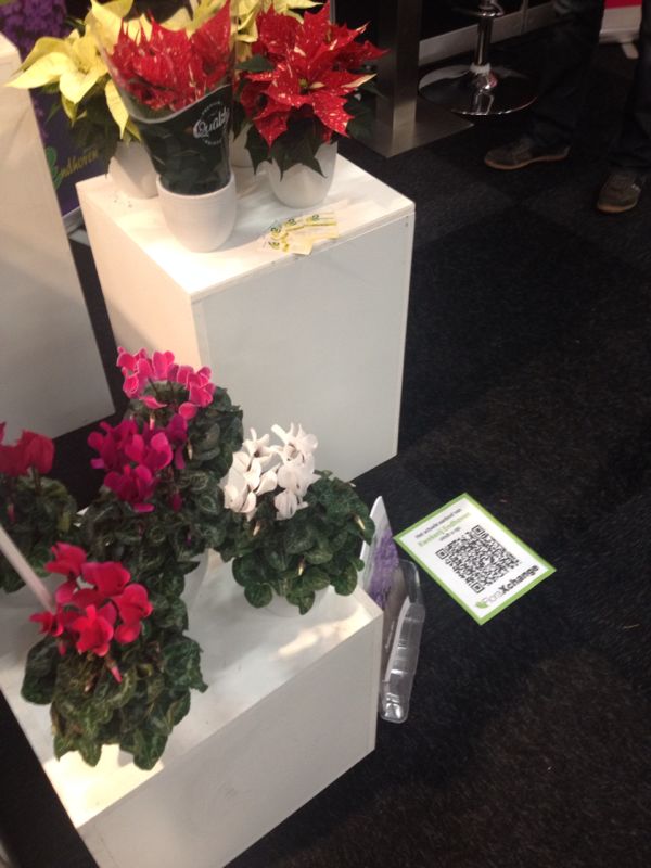 Diverse kwekers hebben een vloersticker ontvangen met een link naar hun actuele aanbod op FloraXchange. Hiermee ziet het publiek niet alleen het actuele aanbod van de kwekers maar ze zien ook welke kwekers actief zijn op dit interactieve platform.