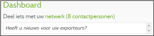 Links bovenin het dashboard zit een vakje waarmee je een statusbericht (vergelijkbaar met een tweet) kan sturen naar je volgers. Dit is een vrije tekst die je wilt delen met de kopers. De inhoud van deze tekst kan alles bevatten. Bovenin het tekstvlak worden de inkopers vermeld die jou volgen om zodoende duidelijk te zien bij wie hij aankomt.